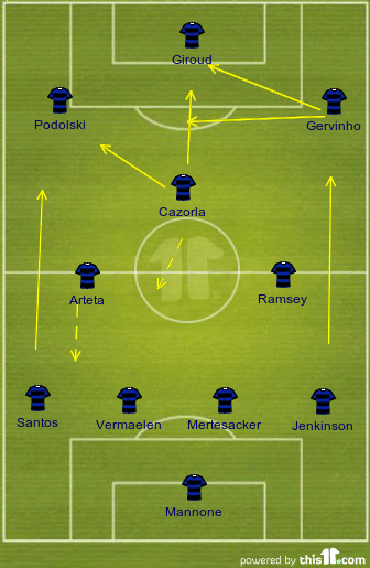 Kieran Gibbs nem lesz szombaton, mert megsérült a West Ham elleni találkozón. Ő még nem gyógyult. Van egy kis esély, hogy készen áll a szerda mérkőzésre, de nagyobb a valószínűsége a QPR. elleni keretben kerülését illetően.