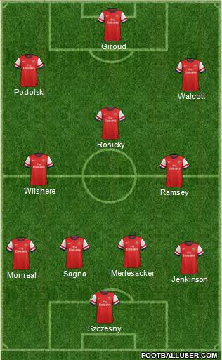 Official Squad: Szczesny, Jenkinson, Sagna, Mertesacker, Monreal, Ramsey, Wilshere, Cazorla, Podolski, Walcott, Giroud